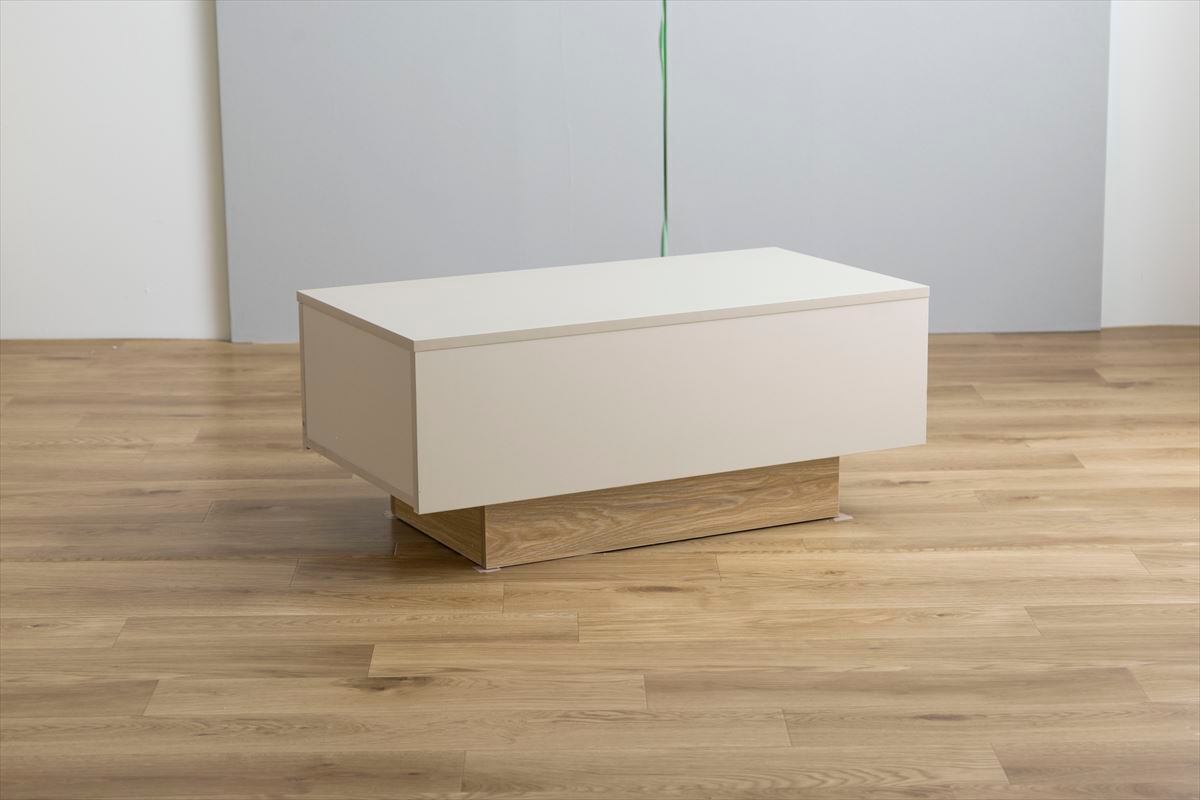 バイカラーの配色が特徴的な『Pom』引き出し付きセンターテーブル