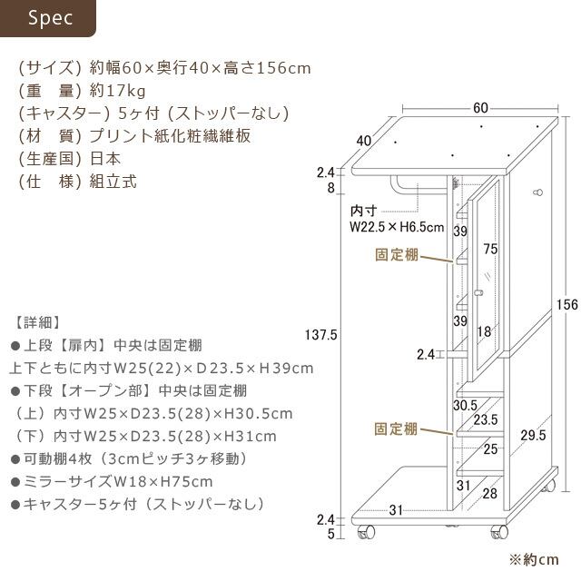【商品サイズ】約 横60×奥行40×高さ156cm