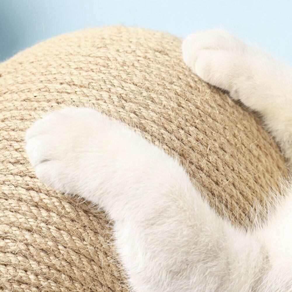 【材質】ロープを巻いてある球型ねこちゃんの爪とぎです。ボールは回転します。爪がひっかかりやすくバリバリと気持ちよく爪とぎができます。段ボール製の爪とぎと比べて長時間使用できます。クズも出にくく耐久性に優れた素材です!