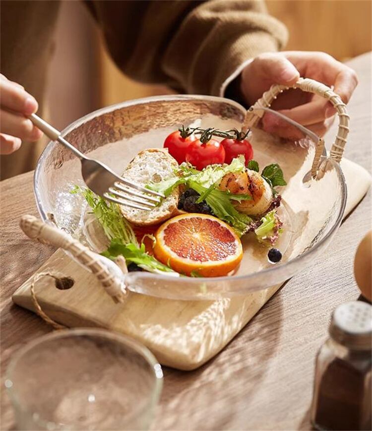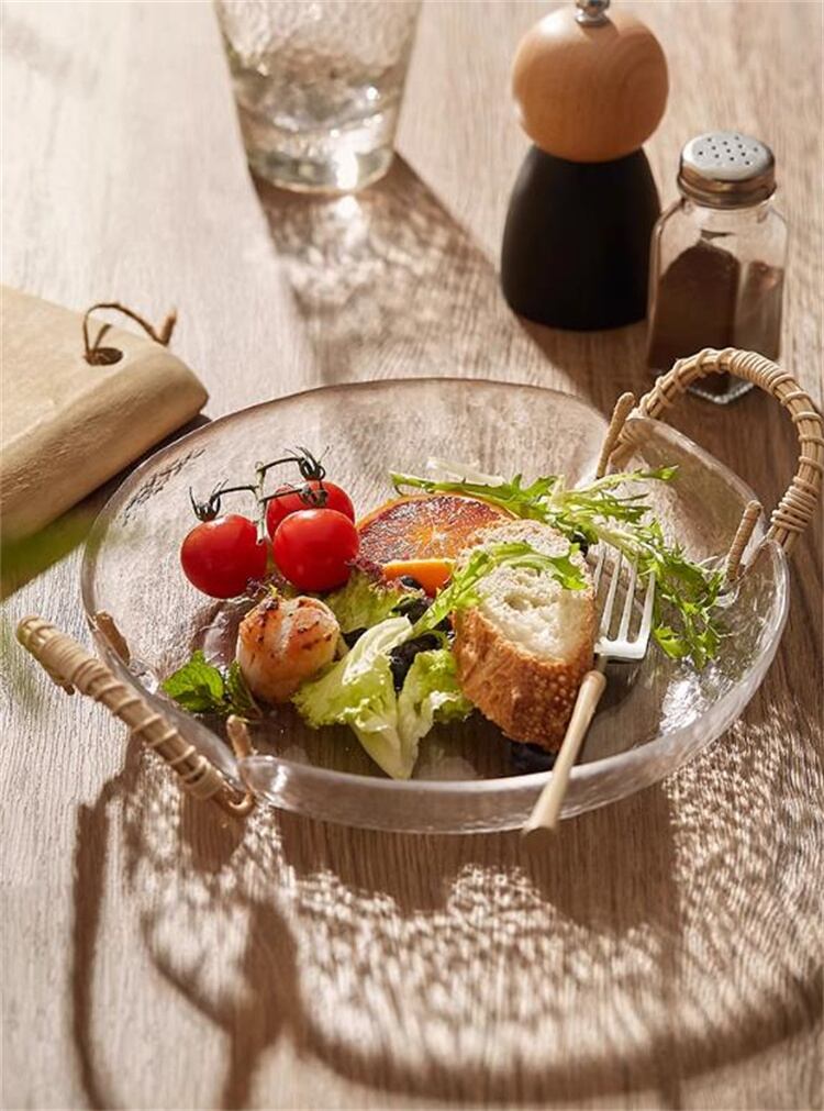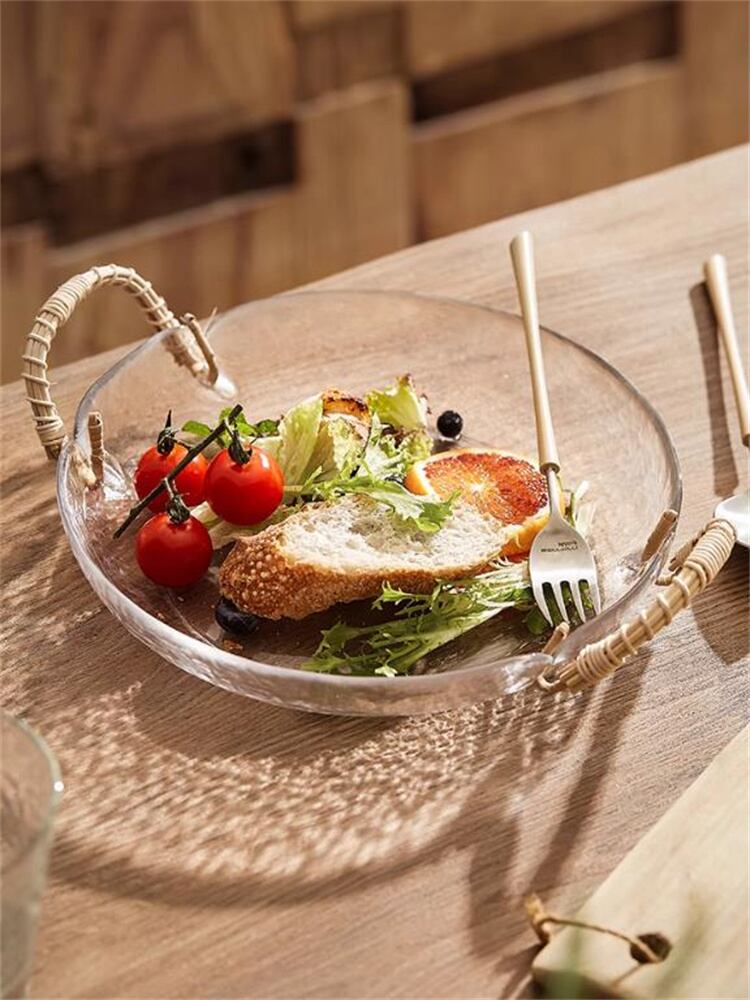 天然籐×ガラス 北欧風フルーツボウル レトロ食器 スナックサラダトレイ おしゃれインテリア雑貨