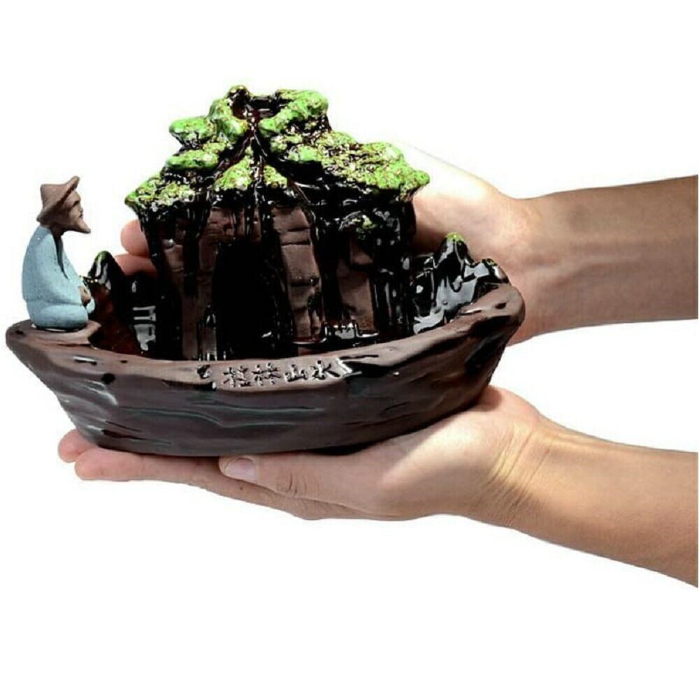 釣り人 森 滝 釣り 倒流香 お香立て 陶器 幻想 インテリア 置物 香り