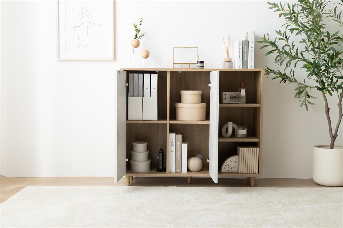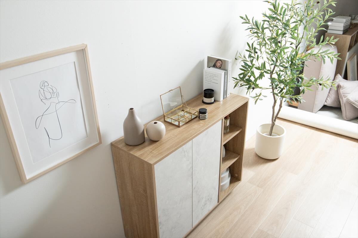 美しい木目×ストーン柄のバイカラーデザインがおしゃれな『Tas(タシュ)』シリーズのキャビネット