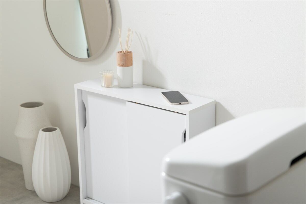 狭いトイレでも生活感を隠して収納できる『Siisti(システィ)』キャスター付きトイレラック