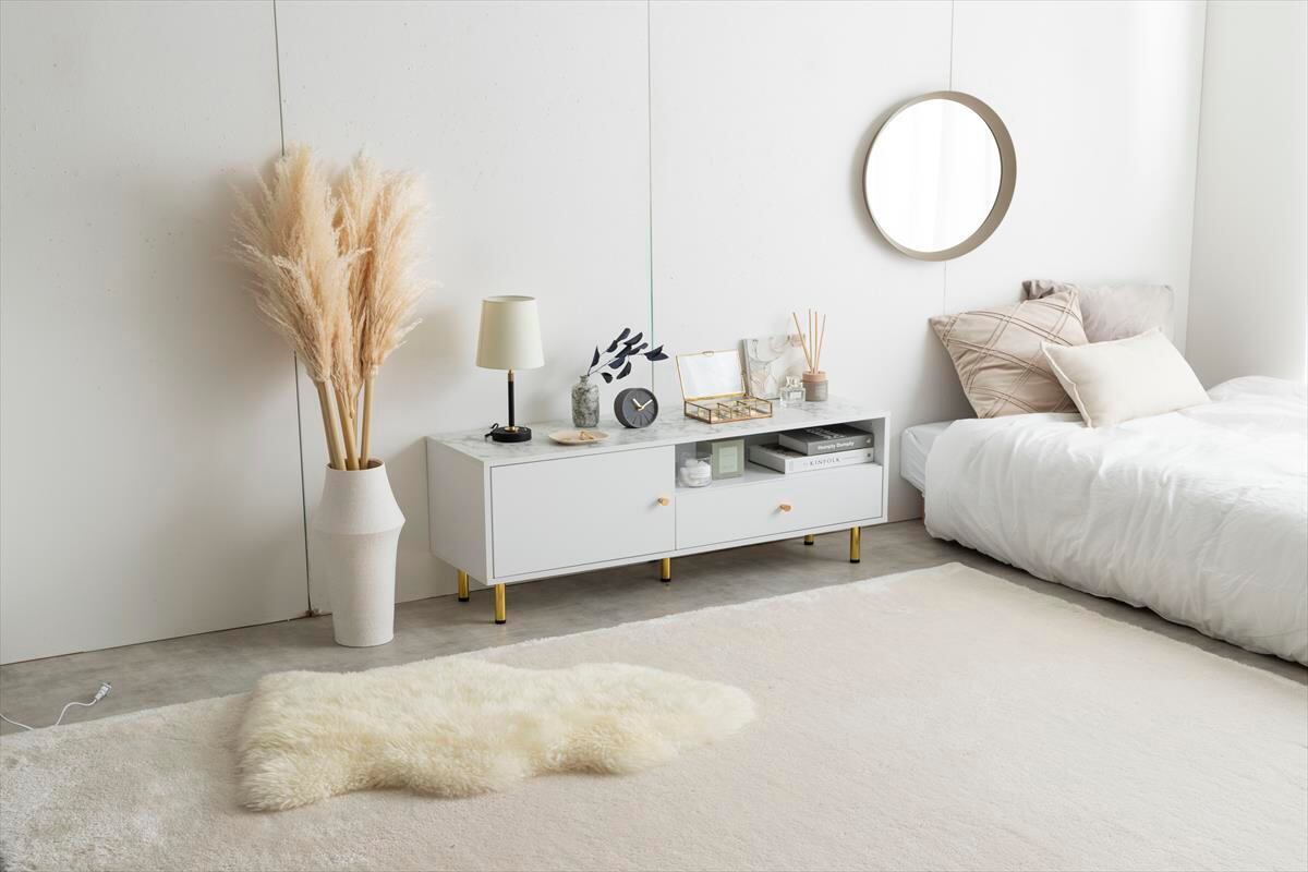 天板の大理石柄とゴールドのあしらいが特徴の『Camila(カミラ)』シリーズの引き出し付きテレビボード