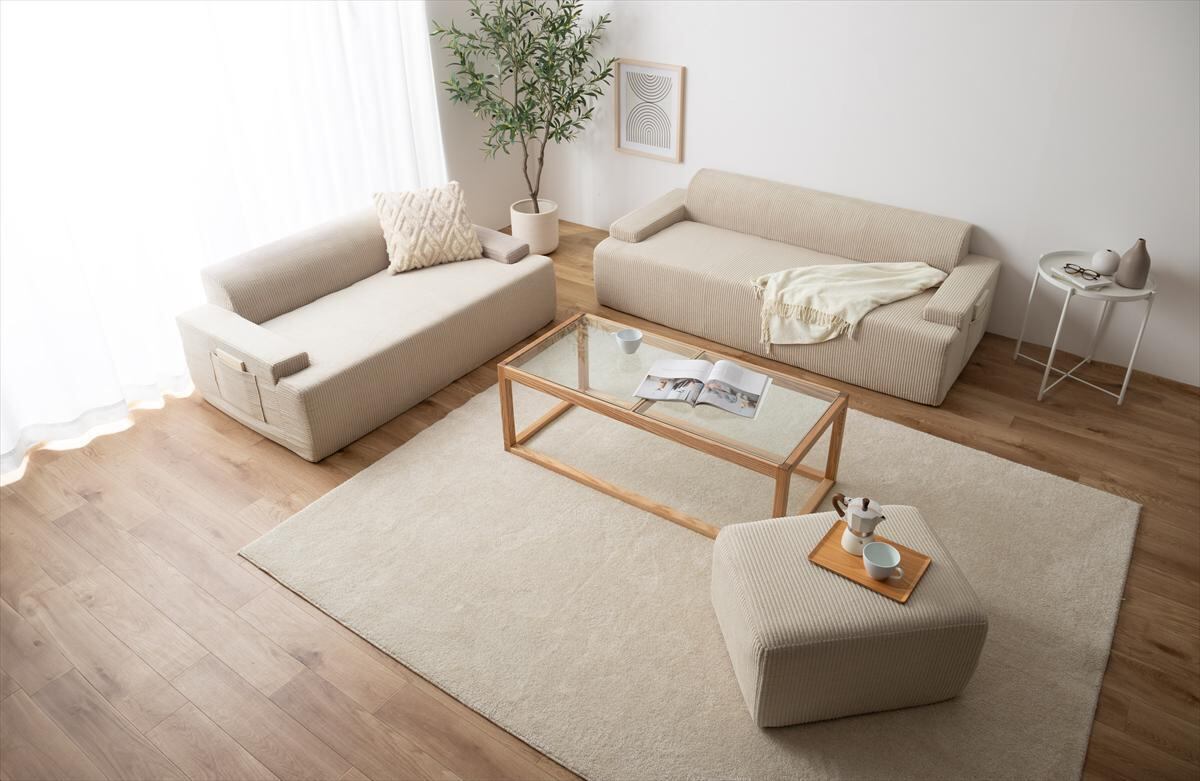 小さく届いて広々使える、快適圧縮ソファ『Parrot(パロット)』シリーズの2人掛けソファ+オットマンセット