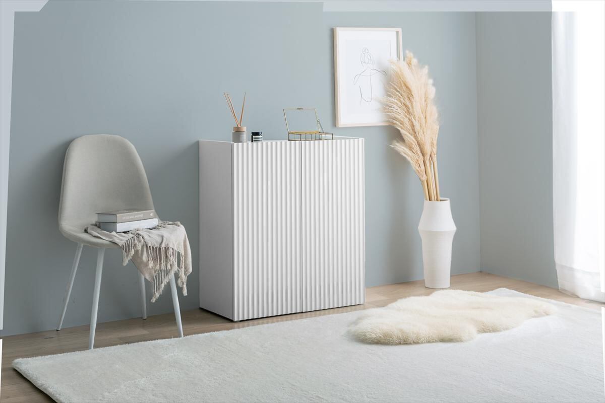 清潔感のあるホワイトと波型扉が魅せる『Sheep(シープ)』シリーズのコンパクトキャビネット