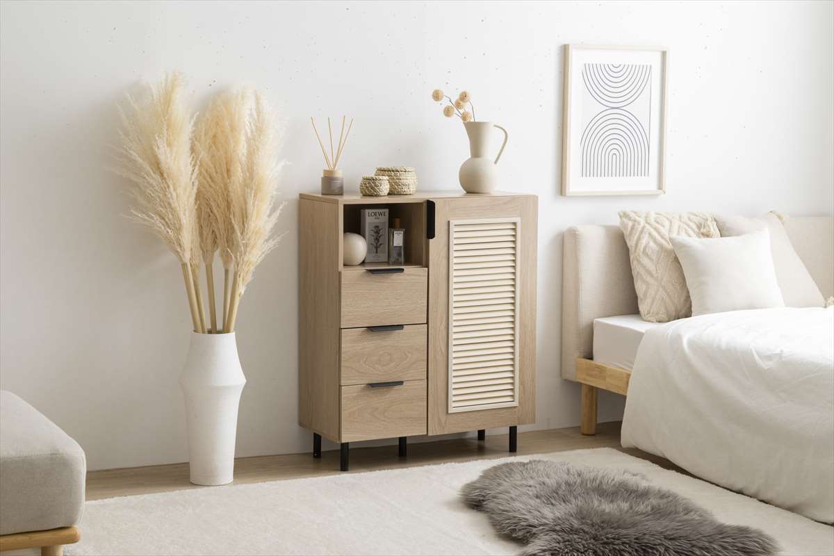 ナチュラルな木目にルーバーデザインをさりげなくあしらった『Coffea(コフェア)』シリーズのキャビネット