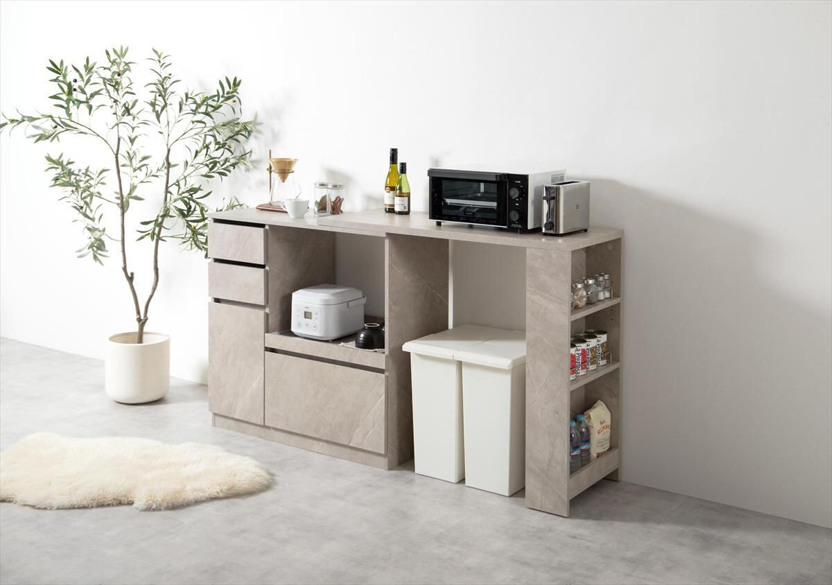 【幅100~154.5cm】Cyrus 伸縮スライド台付きキッチンカウンター