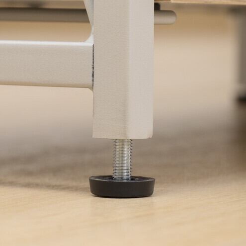脚部には高さを微調整できるアジャスター付き。床の凹凸や組み立て時に生じたがたつきを解消できます。