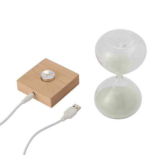 美しいフォルムが魅力のLED付砂時計15分計。白い砂がさらさらと静かに落ちていく様子をのんびりと眺めたり、ふと目にした瞬間に癒されたり。天然木から温かなオレンジ色のライトを照らせばたちまち幻想的なムードに。