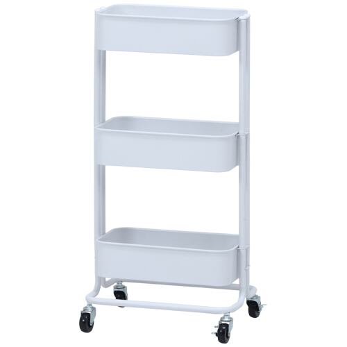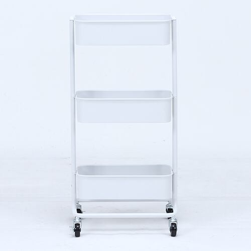 キッチンワゴン バスケット3段 スリム ホワイト