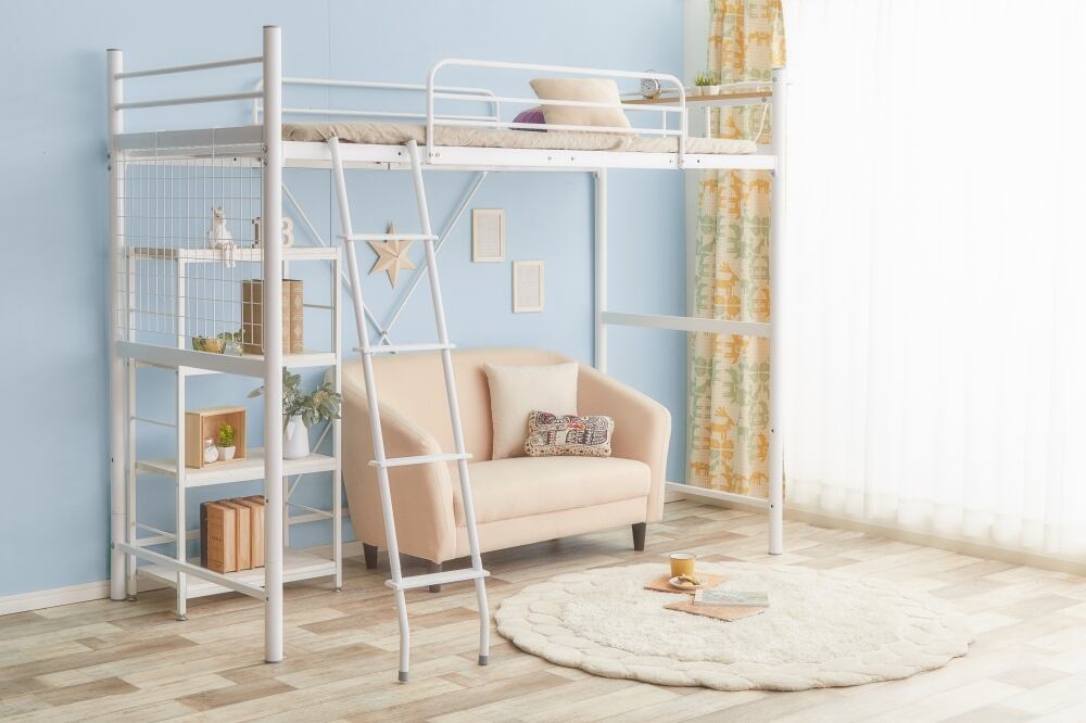 高さ調節可能パイプベッド。お部屋をもっと広々使えるロフトベッド。