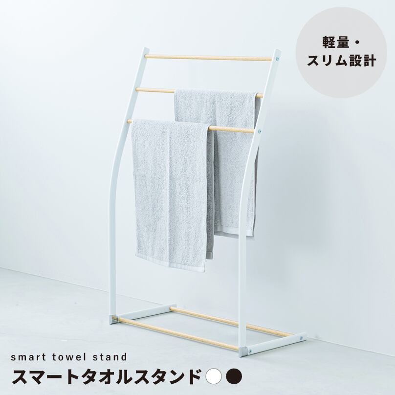 スマートタオルスタンド 収納 タオルハンガー 部屋干し 木目 スリム 北欧風 モダン 韓国インテリア