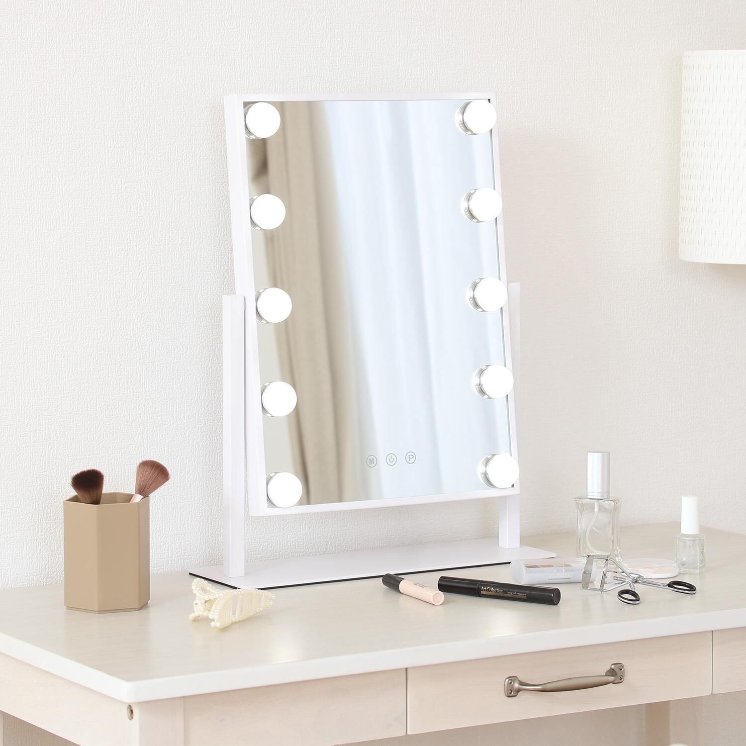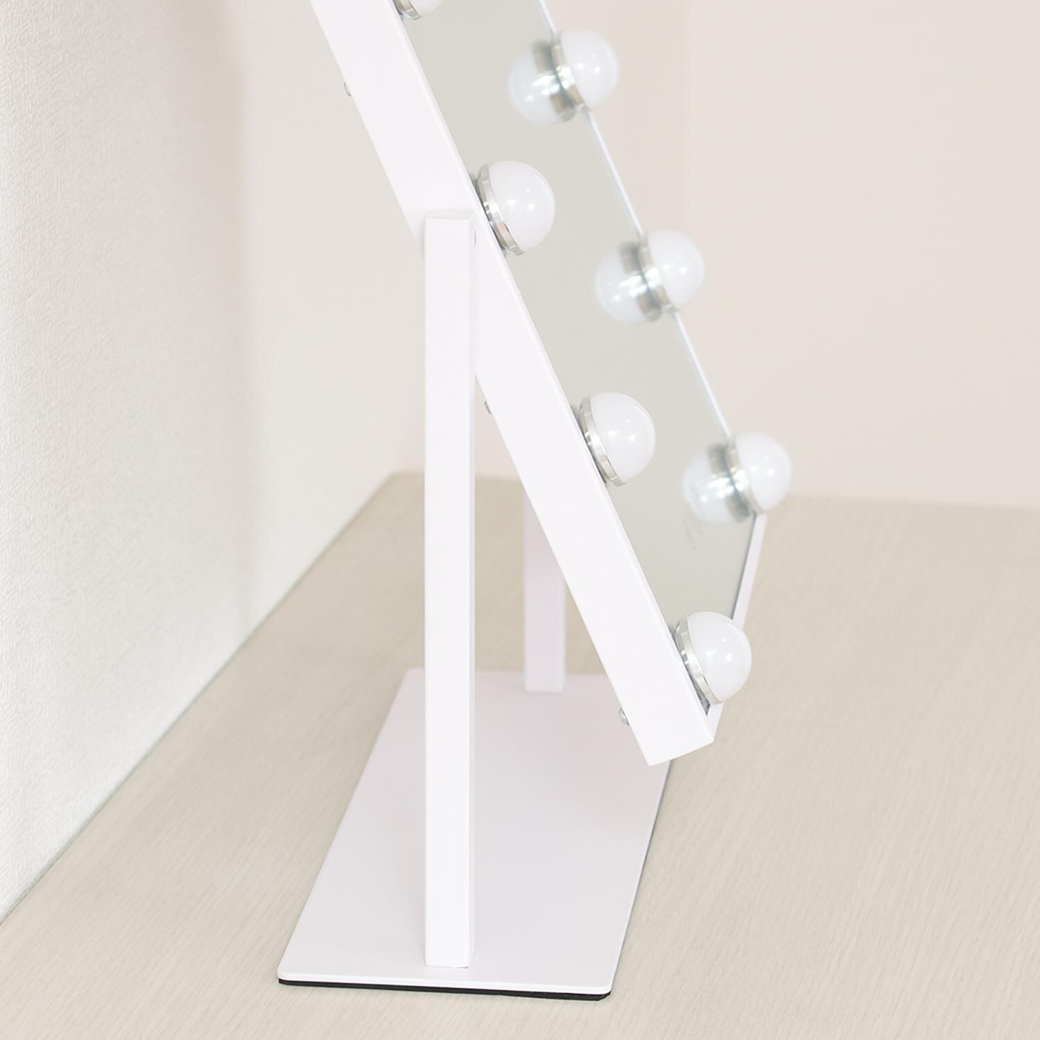 10球のLEDでしっかり照らします。天気や部屋の明るさを気にせずメイクが可能です。