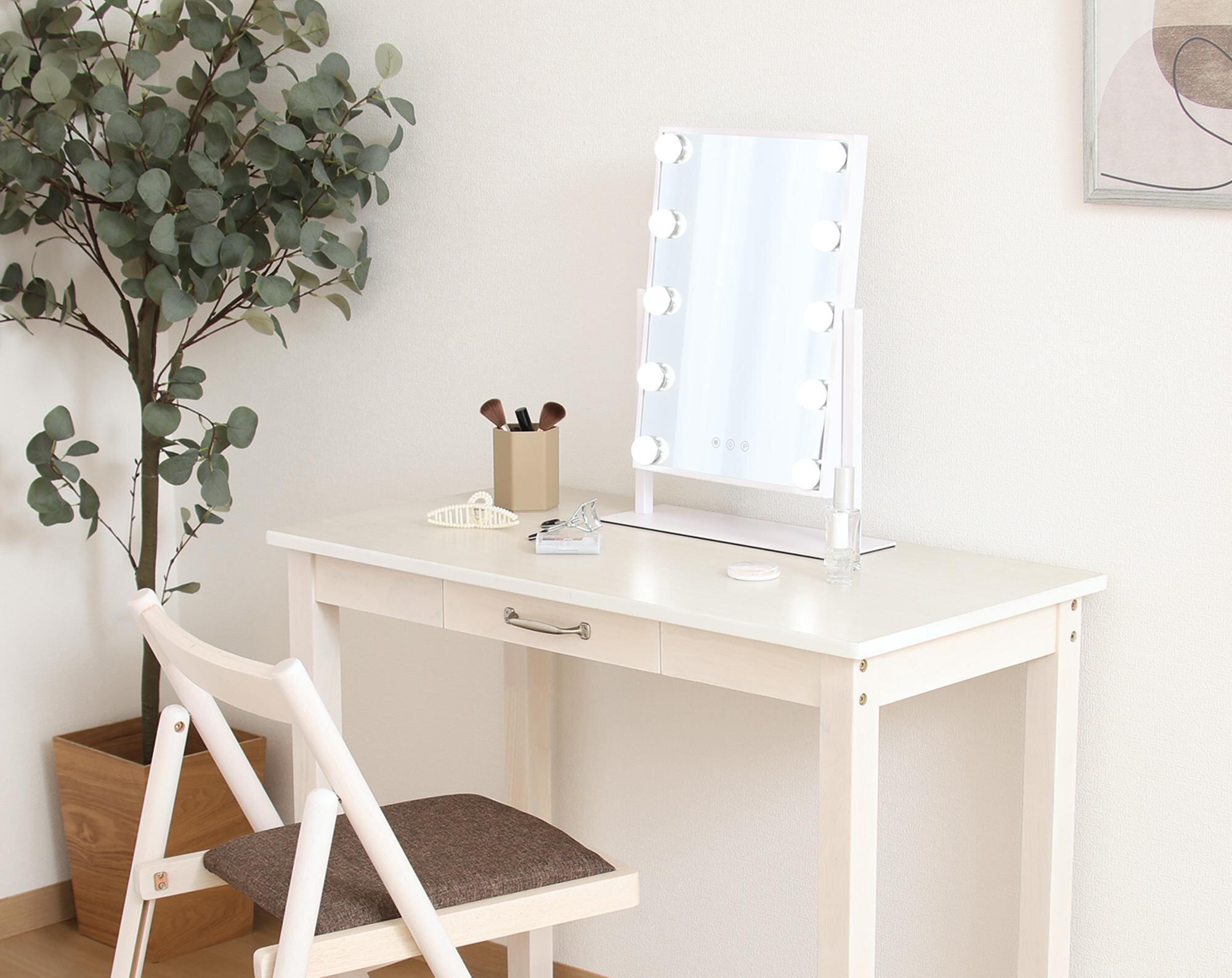 大きくて見やすく、メイクからヘアスタイリングまでしっかり確認できます。また、デスクと合わせてドレッサー風にも。