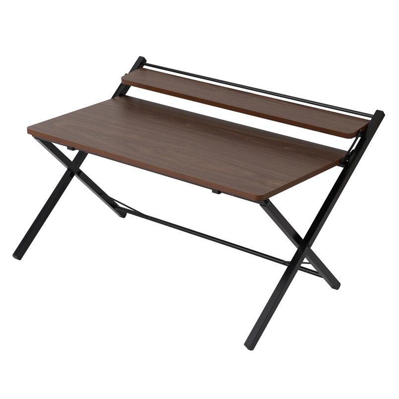 幅80cm◎棚付折りたたみワークデスク(ロータイプ) テーブル 机 木目 収納 テレワーク PCデスク